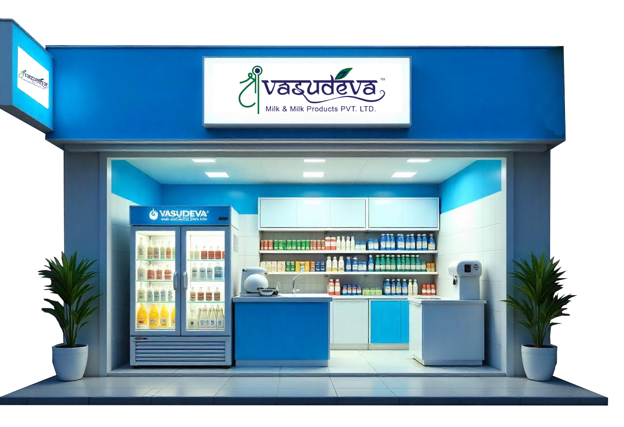 Shrivasudeva Milks are exclusive franchise own franchise operator outlets selling the whole range of products including milk, milk products like Lassi, Dahi, Panner, Taak, Shrikhand, Aamrakhand, Ghee, Basundi, Khova, flavoured milk and also products supplied/approved by Milk & Milk Products PVT LTD.